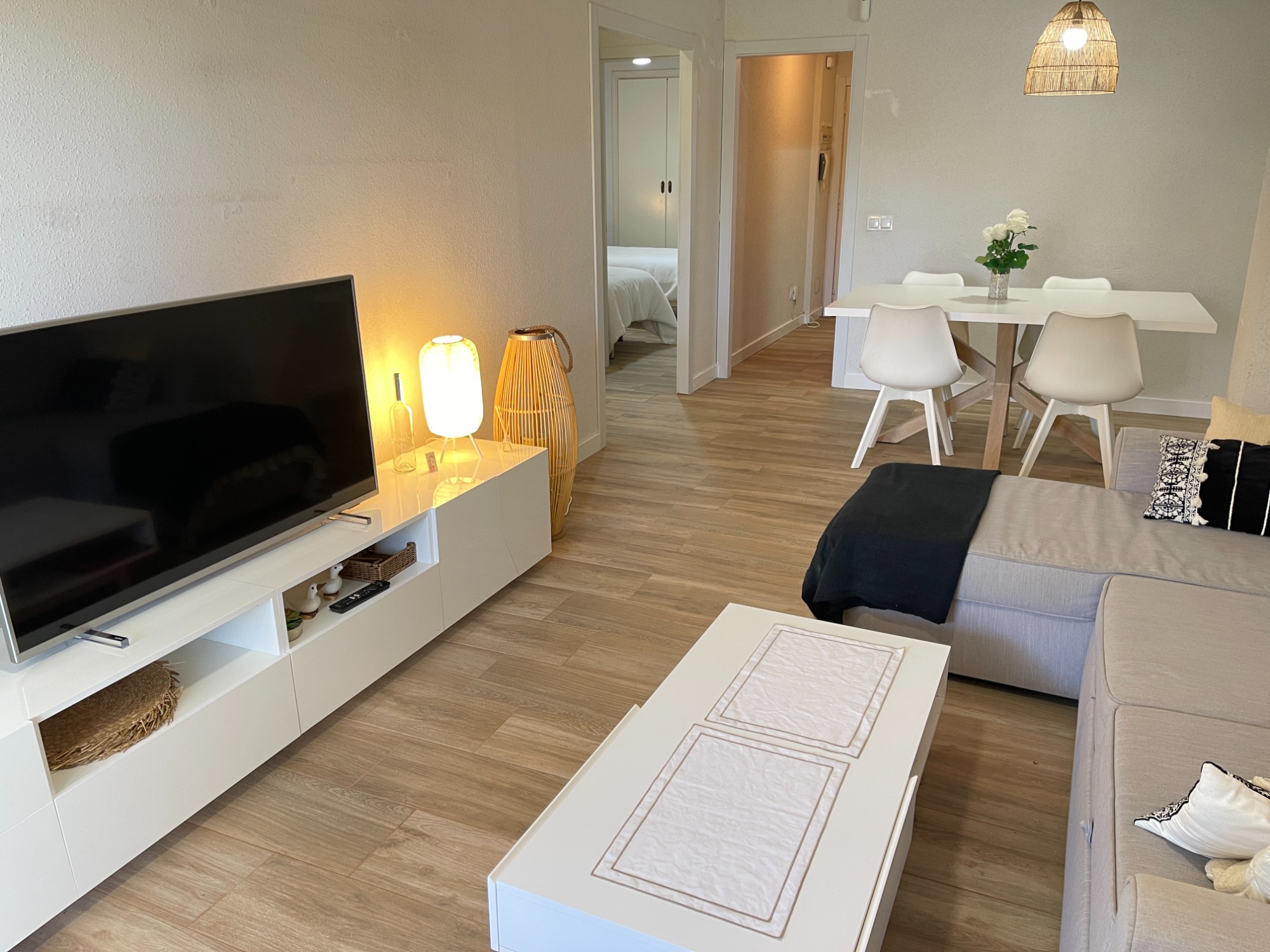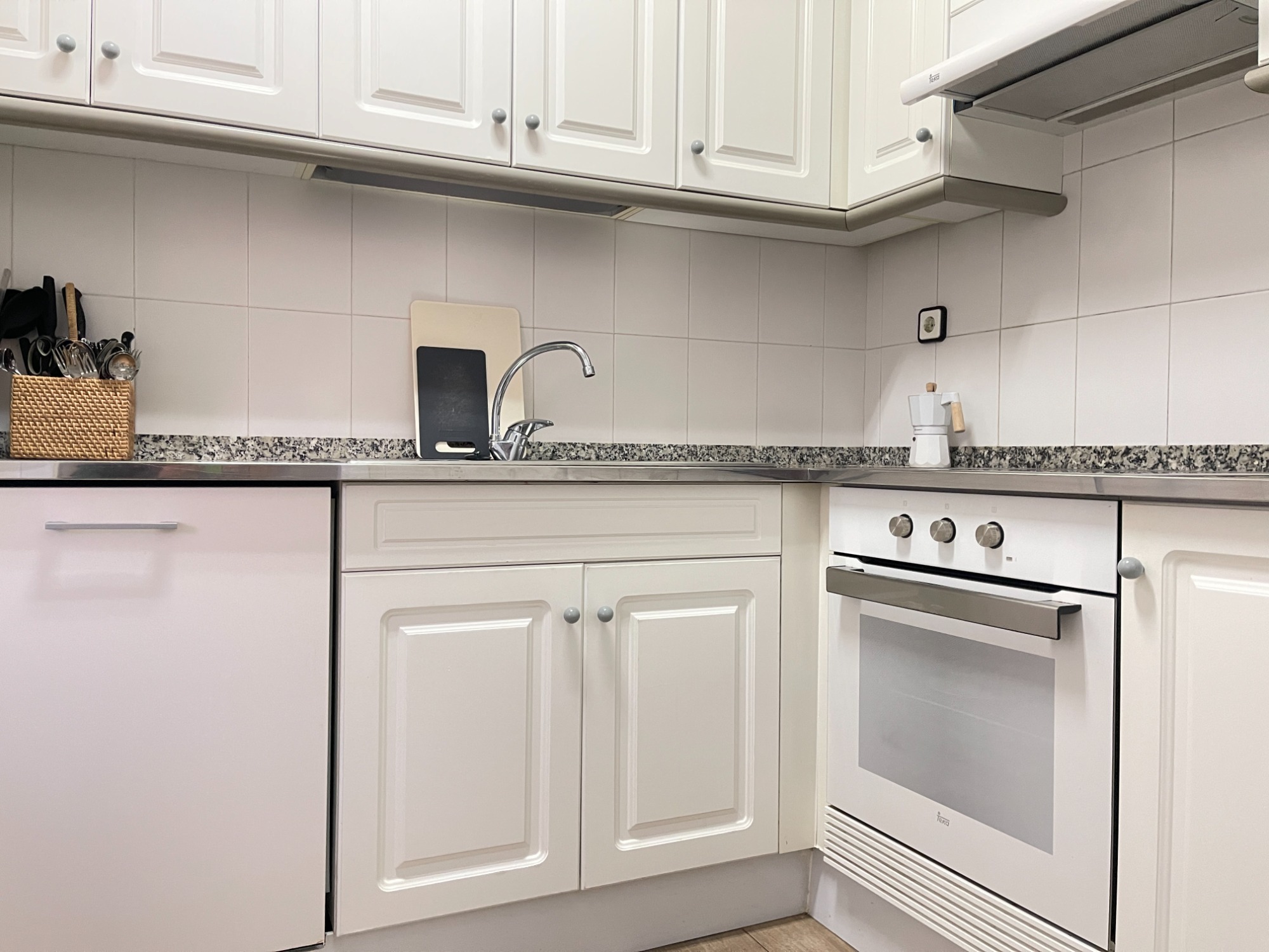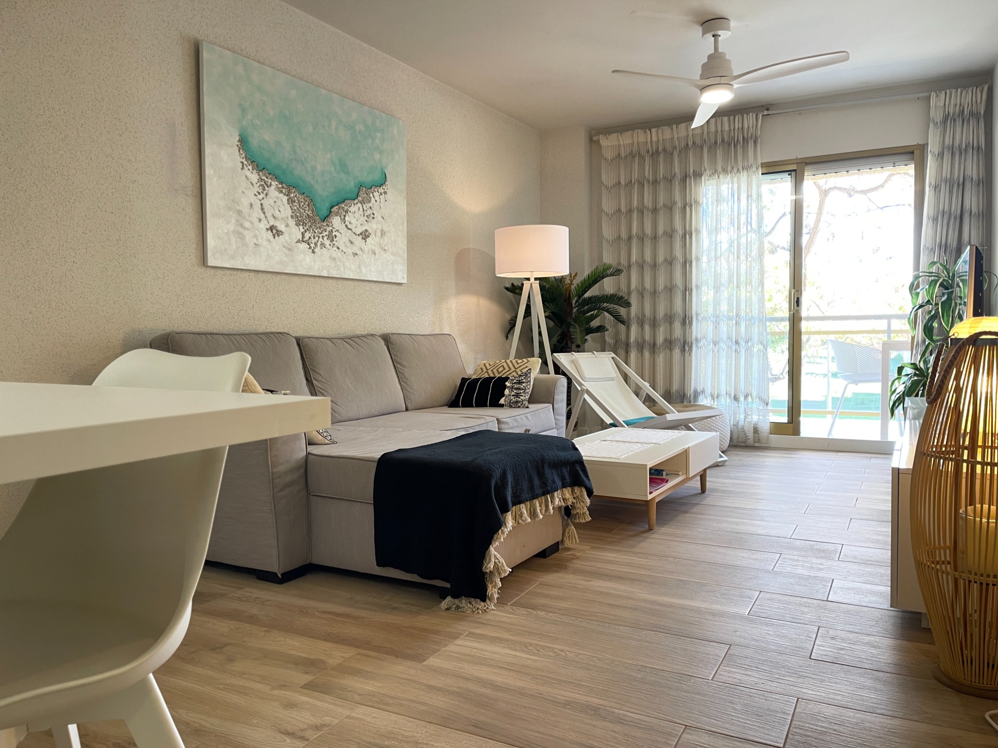 Espectacular inmueble que reúne una serie de características que lo convierten en un producto único e inigualable situado a poco más de 300 m de la playa y a unos 15 minutos a pie del puerto de Cambrils. Comenzaremos por destacar sus 75 m2 construidos distribuidos en un majestuoso salón-comedor, una amplia cocina independiente con lavadero adyacente, dos habitaciones dobles con armarios empotrados y un baño de diseño completamente reformado; sin olvidarnos de una preciosa terraza de unos 12 m2 que nos invita a disfrutar de inolvidables momentos de ocio y relax durante todo el día con despejadas vistas a zonas verdes. Podemos continuar por destacar su exquisito mobiliario y decoración en perfecta combinación con una excepcional luminosidad debido a su orientación este y al carácter exterior de todas sus estancias excepto el lavabo. Dicha orientación hace que el apartamento sea agradablemente fresco en verano, pero, por si acaso, cuenta con eficientes ventiladores de techo en el salón y las dos habitaciones. También cabe reseñar el elegante suelo porcelánico que se extiende por todo el inmueble. Su ubicación en una comunidad que cuenta con una espectacular piscina para adultos sin igual en la zona por su tamaño y con una para los más pequeños justo al lado, además de amplias zonas ajardinadas, casi redondean del todo el excepcional conjunto. Y decimos casi, porque si no fuera suficiente con todo lo anteriormente descrito, el precio de venta incluye una espaciosa plaza de parking subterránea en el mismo edificio con capacidad para un vehículo de gran tamaño completada junto con un trastero contiguo de unos 6 m2 equipado con estanterías. Ah, y que sepas que si finalmente te decides a comprar contarás con los servicios de un conserje todo el año.