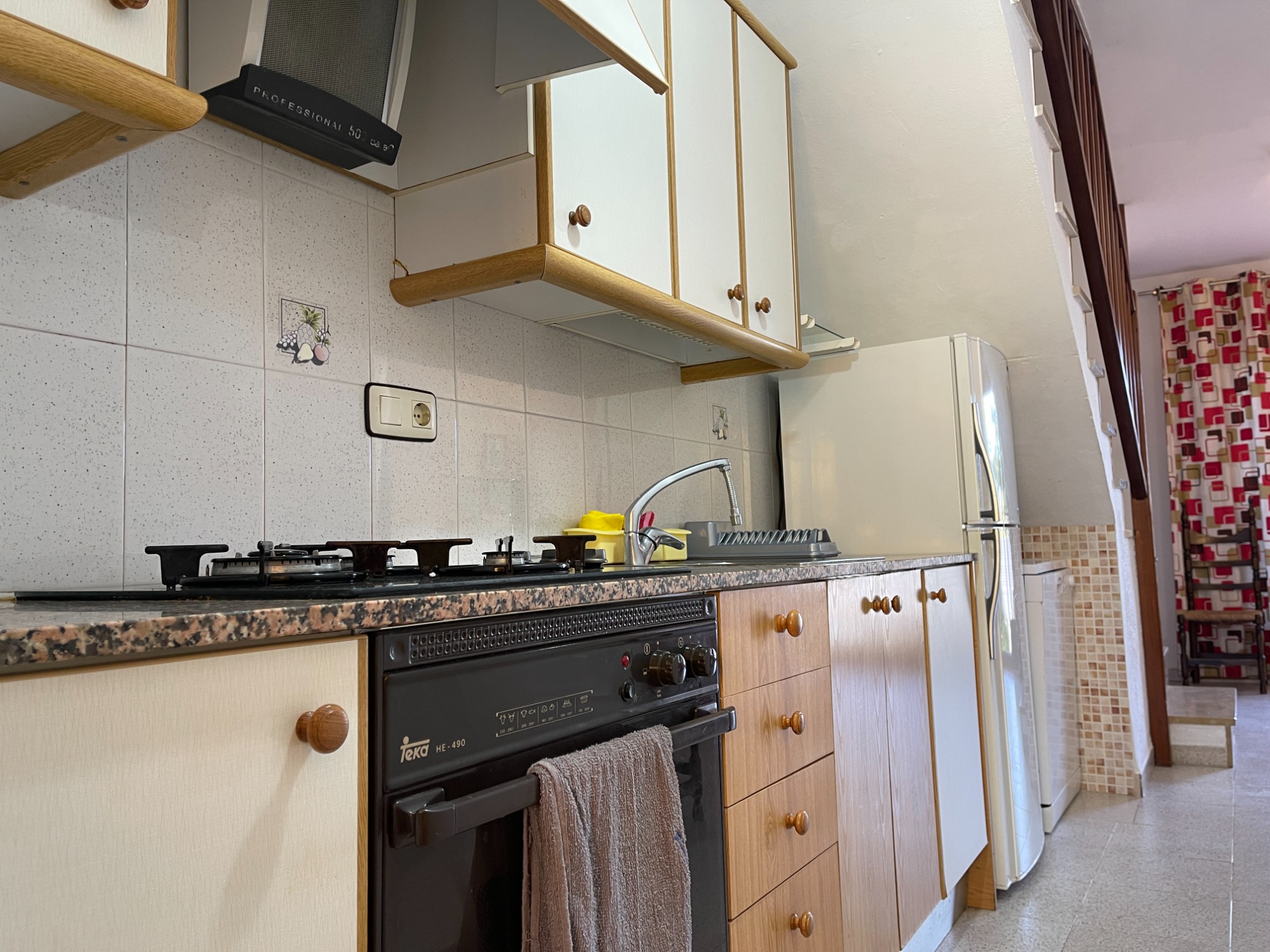 En la planta baja se distribuye un salón-comedor con cocina americana y una habitación doble con un baño completo en suite; en la planta superior encontramos dos habitaciones, un aseo con ducha y tres terrazas (una con vistas a la piscina). Se vende amueblado y equipado. Cuenta con un garaje cerrado con capacidad para un vehículo grande y zona de aparcamiento para más vehículos, además de un trastero que da a la parte de atrás. Parcela de unos 400 m2 ajardinada casi por completo que dispone un porche delantero arbolado y una idílica parte trasera con piscina privada, zona de porche alicatada cubierta con toldo y barbacoa de obra. Ubicada en la urbanización de las Tres Cales, a unos de 5 minutos en coche de las paradisíacas calas de la zona y de L´Ametlla de Mar.