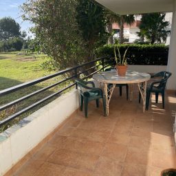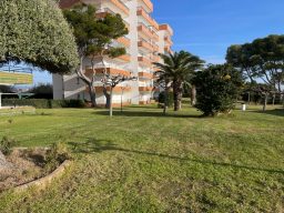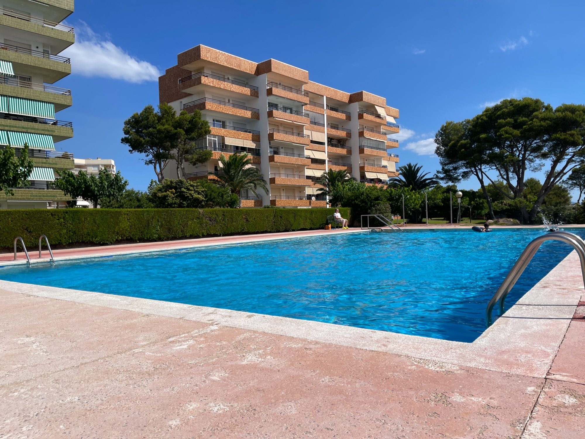 BAJO EN PRIMERÍSIMA LÍNEA CON VISTAS AL MAR (complejo Horizon, Zenith y Panorama). Consta de gran salón-comedor, amplia cocina independiente, dos habitaciones dobles, un baño completo y un aseo. Terraza de 25 m2 con vistas, al mar y acceso directo a la zona comunitaria. Calefacción de gas. Armarios empotrados. Zona comunitaria ajardinada única en la Costa Dorada por su impresionante tamaño, el arbolado y la vegetación que la jalonan, su magnífica piscina delante del mar y que, como colofón, cuenta con acceso directo a las playas situadas a los lados. Parking comunitario. Conserje todo el año.